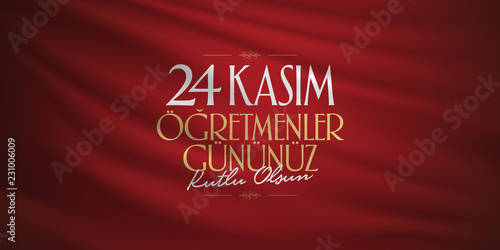 November 24th Turkish Teachers Day, Billboard Design. Turkish flag symbol. Turkish: November 24, Happy Teachers' Day. (TR: 24 Kasim Ogretmenler Gununuz Kutlu Olsun)