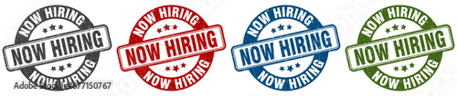 now hiring stamp. now hiring round stamp set isolated on white background