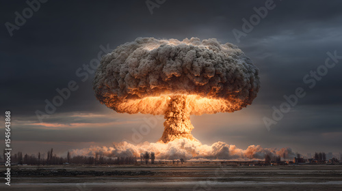 Nuclear explosion of an atom bomb with a mushroom cloud