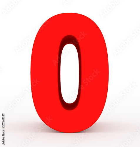 number 0 3d clean red isolated on white