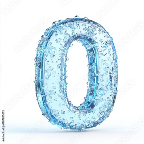 Number 0 made of glistening frost and icicles with a shimmering crystalline effect isolated on a clean white background