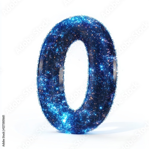 Number 0 made of glowing starry dust with twinkling cosmic sparkles isolated on a clean white background