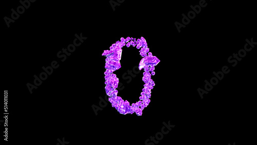 number 0 made of pink glamour gemstones or symbol on black, isolated - object 3D rendering