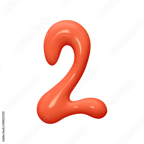 Number 2. Two Number sign red color. Realistic 3d design in cartoon liquid paint style. Isolated on white background. vector illustration