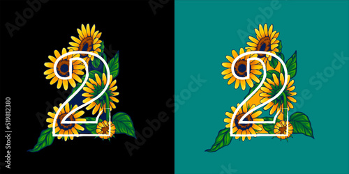 Number 2 With Summer Themed Sunflower Illustration