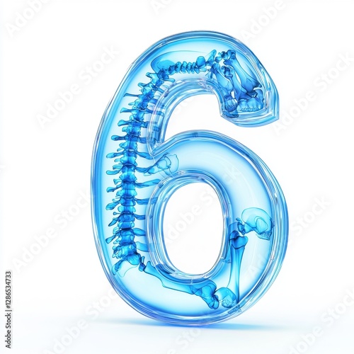 Number 6 made of glowing blue X-ray scan effect with visible bone structure isolated on a clean white background
