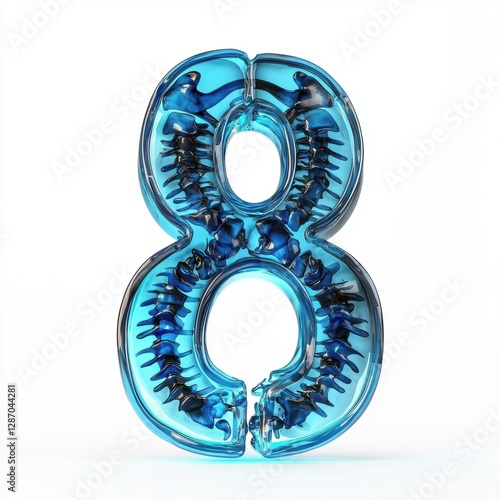 Number 8 made of glowing blue X-ray scan effect with visible bone structure isolated on a clean white background
