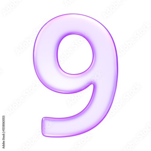 Number nine in translucent glassmorphism purple styl, useful for infographics, UI ranking, or step indicators, 3d rendering