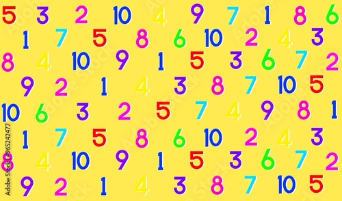Numbers background, 3d numbers, yellow background with colorful number, yellow, colorful, happy, school, fun, study, wrapping, paper, fabric, textile