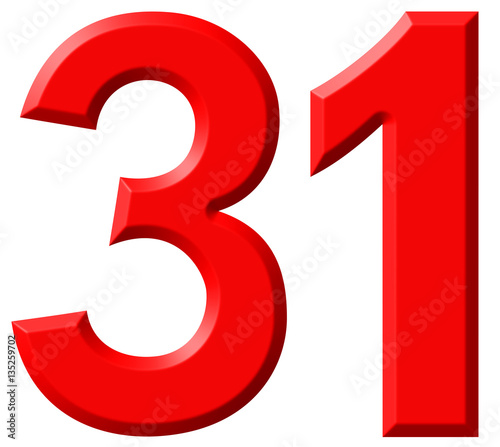 Numeral 31, thirty one, isolated on white background, 3d render