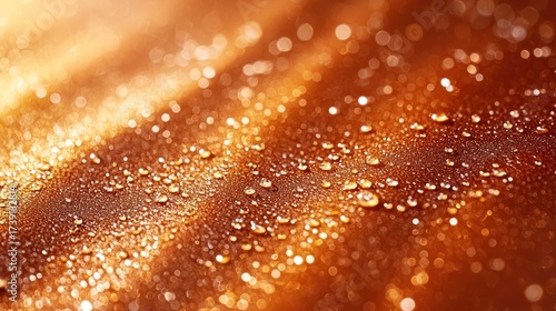 Numerous glistening water droplets on a textured, warm-toned, water-repellent surface