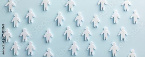 Numerous human silhouettes in soft blue, organized crowd, symbolizing unity or population density