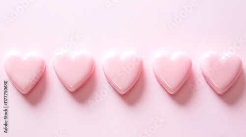 Numerous pastel pink hearts representing love arranged on a smooth backdrop