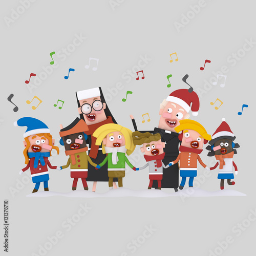 Nun and priest singing xmas songs with kids. Custom 3d illustration contact me!