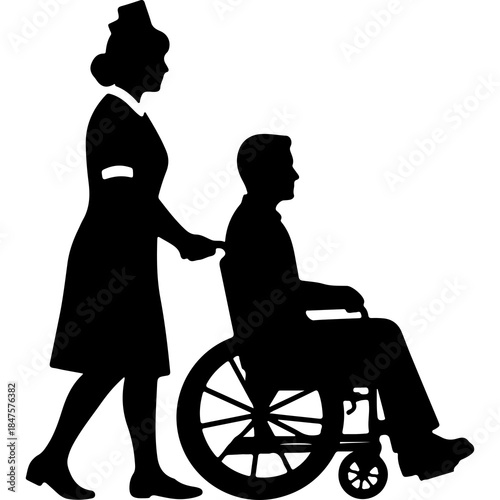 Nurse assisting patient in wheelchair with transparent background