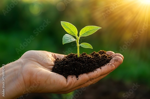 Nurturing a Young Plant in Caring Hands Under Sunlight