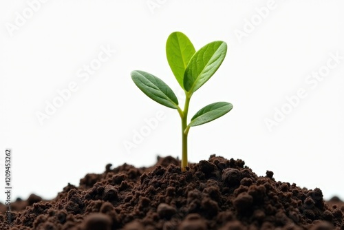 Nurturing Growth: Fresh Green Seedling Emerging from Rich Dark Soil Symbolizing New Beginnings and Environmental Awareness