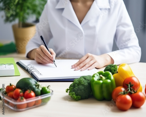 Nutritionist Working in Office: Writing Diet Plan with Vegetables Keto Diet Lifestyle