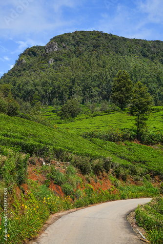 Nuwara Eliya tea plantation in Sri Lanka. Nuwara Eliya is the most important place for tea plantation and production in Sri Lanka.