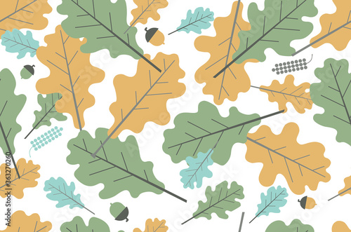Oak leaf seamless pattern. Acorn. Forest.