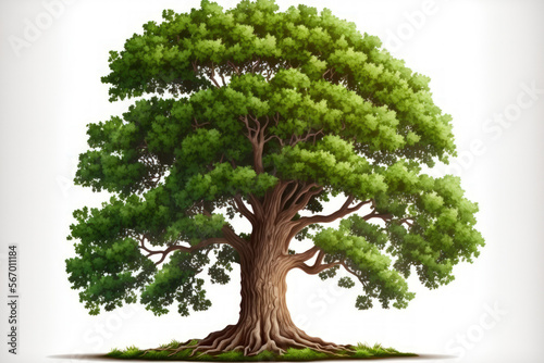 Oak tree alone on a white background. Generative AI