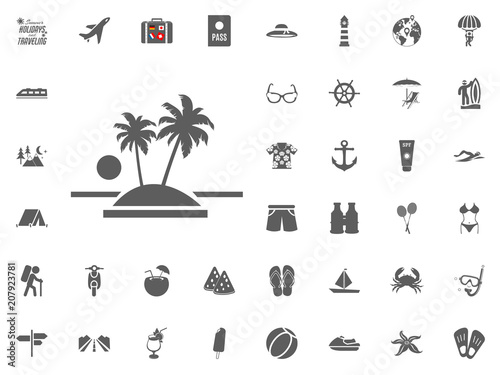 Oasis island icon. Summer holidays and Traveling vector icons set.