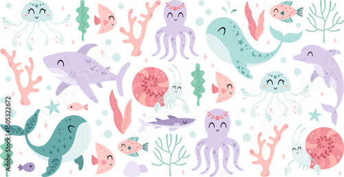 Ocean animals 16oz libbey glass can wrap. Cute sea animal cup wrap. Coastal ocean glass, Summer 16oz full wrap, Sea life UV DTF design