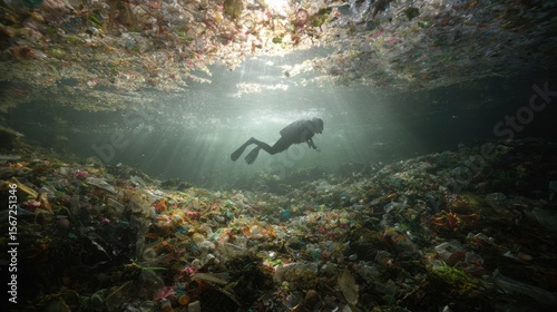 Ocean Explorer: A diver gracefully glides beneath the ocean's surface, immersed in a world of vibrant marine life and sunlight filtering through, a symbol of exploration and underwater beauty.
