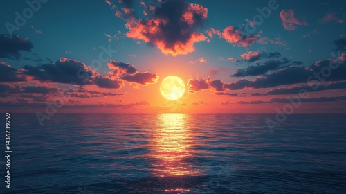 Ocean Sunrise with Dramatic Clouds and Golden Light Reflection on Water