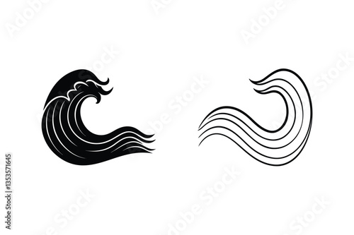 Ocean Wave Icons Black, White, Style, Design, Graphic, Water, Symbol, Nature, Element, Illustration