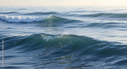 Ocean Waves, Gentle Sea, Blue Water, Peaceful Scene, Morning Light.