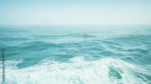 Ocean waves with turquoise water and bright sky, concept of summer, freedom and natural beauty.