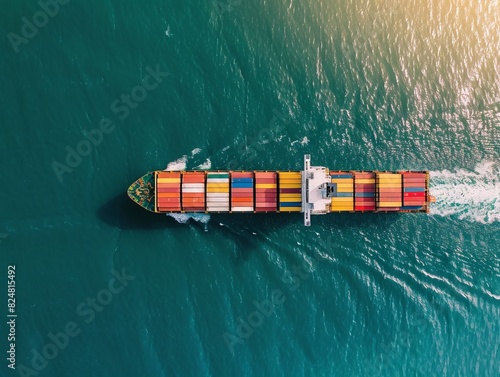 Oceanic Expanse: An Aerial Perspective of a Container Cargo Ship at Sea