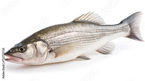 Oceanic Freshness: One Raw Seabass Fish Isolated on White
