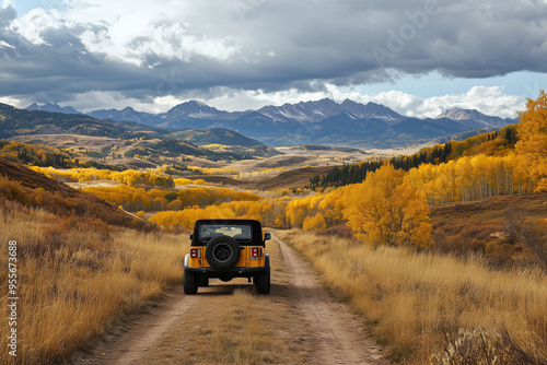 Ochre Jeep on a Backcountry Road: Rugged Adventures Off the Beaten Path