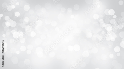 Octagonal bokeh on white-gray gradient blur background. Beautiful abstract blurred sparkling reflection light scene. Silver tone luxury wallpaper.