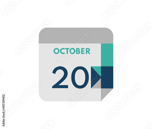 October 20 flat daily calendar date, 20 October Single Day Calendar Icon