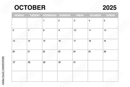 October 2025 Monthly Calendar Planner Template. 3d Rendering
