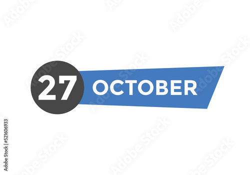 october 27 calendar reminder. 27th october daily calendar icon template. Calendar 27th october icon Design template. Vector illustration