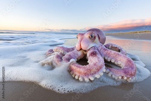 Octopus on beach at sunrise