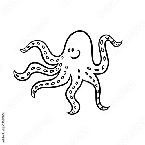 Octopus.A simple sketch drawn by hand.Summer vector illustration in Doodle style. Isolated object on a white background. For the design of icons, logos, and children's coloring books.