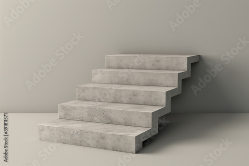 of a collection of 3D simple primitive minimalist stairs, each distinctly positioned on a neutral grey background