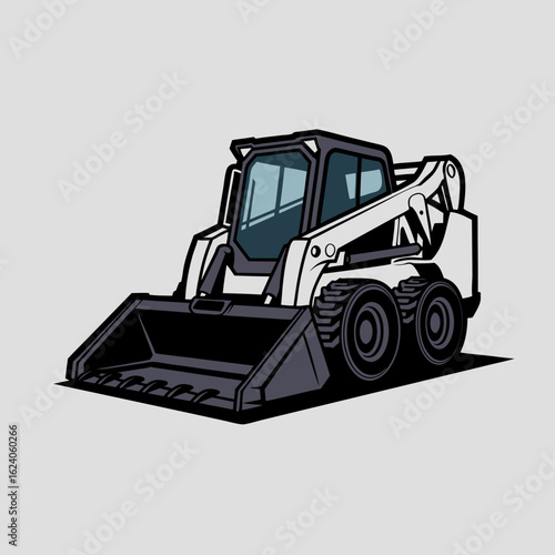 Of a mini excavator in a simple black and white design. Suitable for constructionthemed designs and industrial visuals.