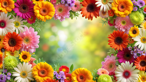 of colorful flowers with a decorative background frame, flowers,colorful, vibrant, nature, botanical, design, artistic, backdrop