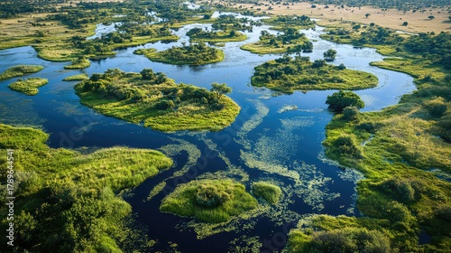 of deep blue water channels winding through