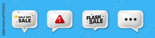 Offer speech bubble 3d icons. Half off sale. Special offer price sign. Advertising discounts symbol. Half off sale chat offer. Flash sale, danger alert. Text box balloon. Vector