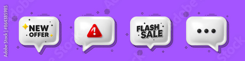 Offer speech bubble 3d icons. New offer tag. Special price sign. Advertising Discounts symbol. New offer chat offer. Flash sale, danger alert. Text box balloon. Vector