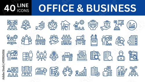 Office and Business Icons set. Vector illustration in modern thin line style of business related icons: teamwork, documents, devices, and more.