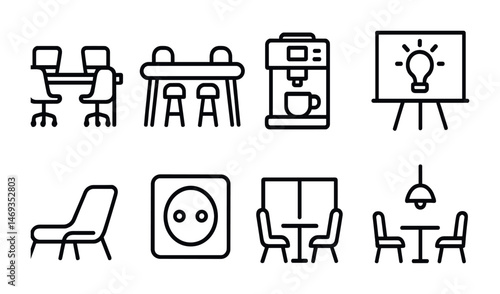 Office and workspace line icons set – outline, linear, business and productivity tools