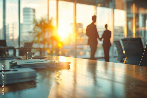 Office, business people and handshake for partnership, agreement or teamwork in corporate project.
